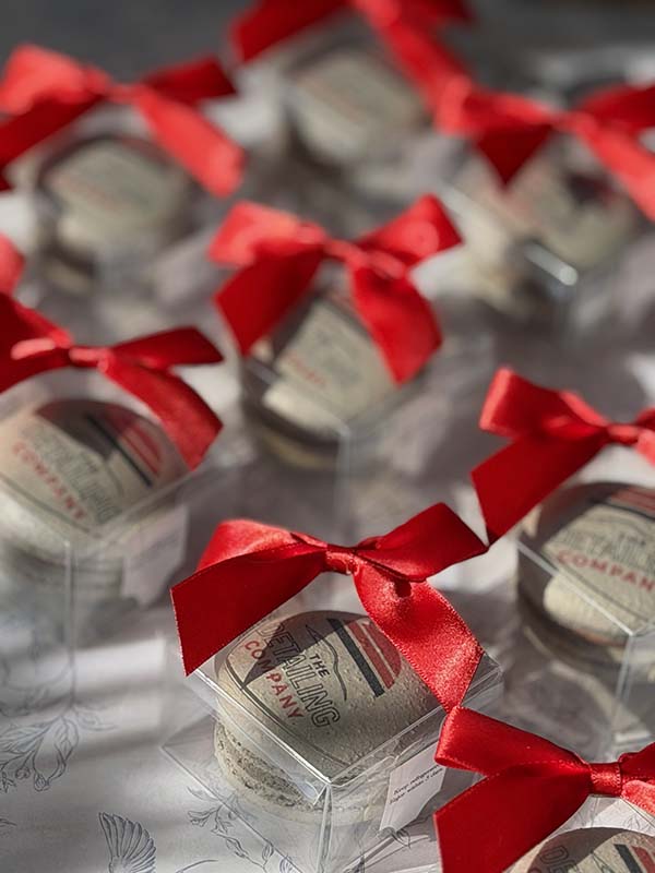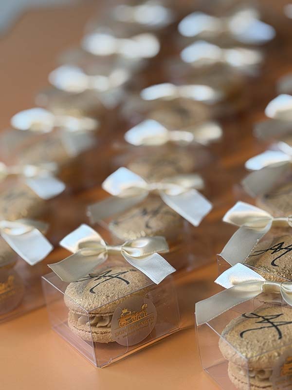 Each macaron can have its own message or design, beautifully packaged for guests to take home. Choose colours for boxes, ribbons, and decor to perfectly match your event’s theme.