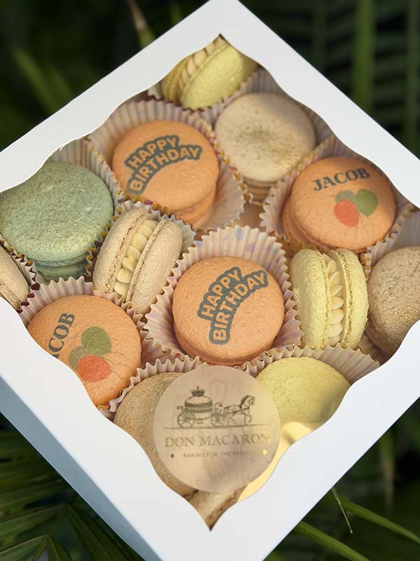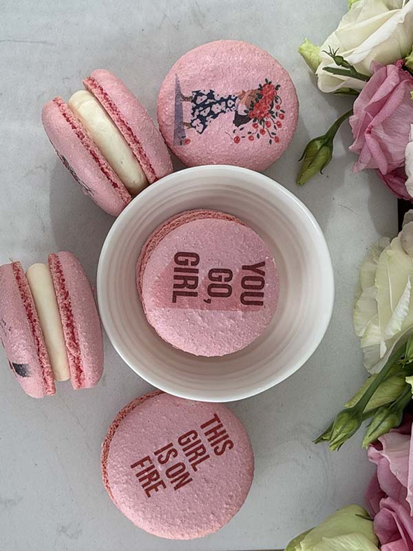 We can print photos, illustrations, messages, or logos directly on your macarons, supporting the spirit, colours, and idea of your celebration.